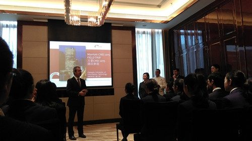 【本网讯】11月24日下午,我校管理学院旅游管理和会展经济与管理专业学生在王旌璇老师带领下,参加了由美国万豪基金会中国旅游教育合作项目“万礼豪程”组织的酒店参观项目——赴成都富力丽思卡尔顿酒店参观学习,与成都丽思卡尔顿酒店的高管们进行了面对面的沟通交流。