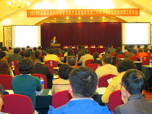 [本网讯]10月15-17日,由国家自然科学基金委员会(NSFC)主办,云南大学科技处承办的“2014 年国家自然科学基金西南片区联络网管理工作研讨会暨云南联络网工作会议”在昆明召开。国家自然科学基金委员会副主任高瑞平、局长孟宪平,云南大学副校长张克勤,基金委计划局、财务局、国际合作局、纪检监察审计局、化学科学部、工程与材料科学部、信息中心及云南省科技厅等部门相关负责人出席会议,来自四川省、贵州省、重庆市、西藏自治区和云南省的国家自然科学基金依托单位代表180余人参加了会议,我院科技处刘敦虎参加了此次会议。