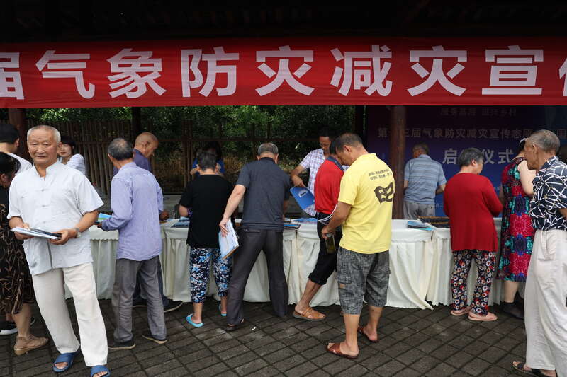 启动仪式后,当地群众在现场领取气象防灾减灾宣传资料。中青报·中青网记者王鑫昕/摄