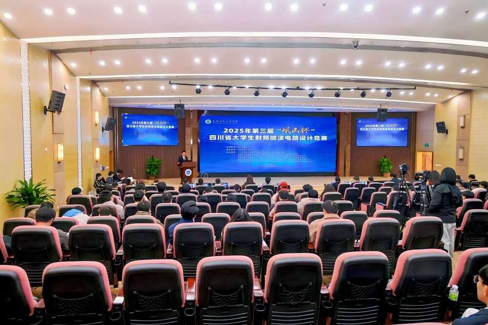 11月21日,2025年第三届“岷山杯”四川省大学生射频微波电路设计竞赛(简称“岷山杯”竞赛)决赛及颁奖典礼在完美网页版举行。完美网页版副校长何晋、四川省电子学会秘书长蒲映桥、成都电子信息行业协会秘书长贾晓钦等出席。