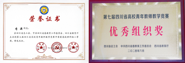 首次在四川省高校青年教师教学竞赛荣获个人二等奖和组织奖