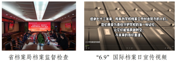 (二)规范有序开展档案管理工作。高质量完成省委办公厅、省教育厅联合检查组对学校档案工作的专项监督检查,并获高度评价。拍摄专题视频,大力宣传“6.9”国际档案日。协助上级部门处理学历认证698人次;日常档案查阅1456人次、1723卷,接收各类实体档案资料1.8万件,录入数据5万余条,扫描文件1952份、9123页,OA归档电子文件2535件。