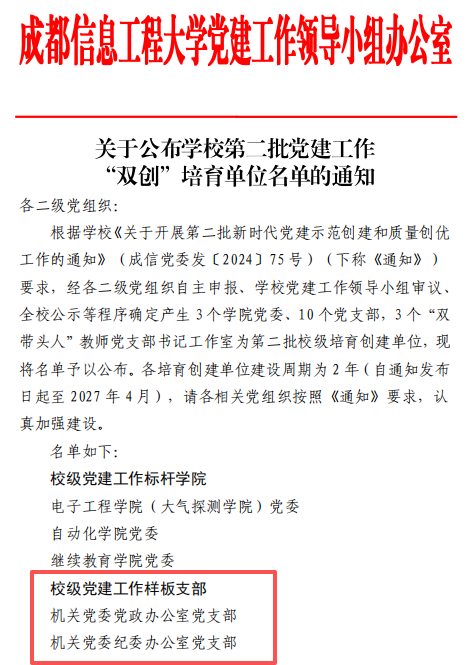 校级样板支部培育单位名单