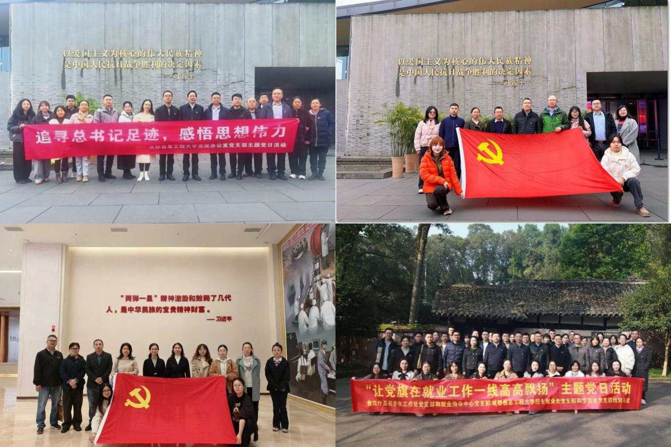 4.融合赋能促发展,推动党建与业务深度融合。围绕完美(中国)官方中心任务,积极探索“一融双高”路径。赴西南交大、西南财大、西南石油、西科大等4所兄弟高校机关党委开展调研学习,及时借鉴兄弟高校机关党建与业务融合的经验和做法,推进完美网页版机关样板支部创建与党建品牌打造。支持促进校内业务关联支部之间、校际支部之间、与上级部门业务对口单位支部开展联学联建,如:党政办与组织部、统战部支部联合开展赴宜宾“追寻总书记足迹,感悟思想伟力”主题活动;资产处与审计处支部赴邛崃红军长征纪念馆开展联合党日活动;招就处支部与西南民大招就处支部开展联建,共促就业工作;学生处、招就处两个支部联合省教育厅业务对口支部赴陈毅故居开展实践学习与工作交流等,以党建引领促业务提升,破解业务难题,推动党建与业务“一融双高”。