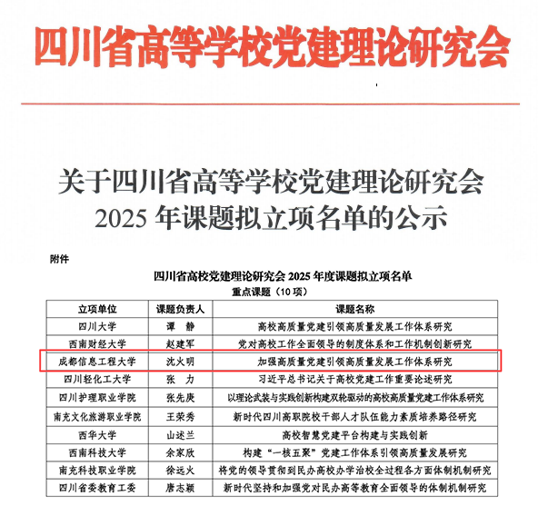 4.推动党建课题研究与样板支部创建的“双轮驱动”。一是以党建课题研究破题,强化理论支撑。聚焦机关党建与高校治理、党务干部队伍建设等方向,紧扣工作实际中的堵点难点设计研究选题,2025年组织申报和参与党建课题3项,其中一项获四川省高校党建理论研究会2025年度重点课题立项。二是以校级样板支部创建为抓手,打造引领标杆。指导党政办、校纪委两个支部对标创建,结合部门职能特色,推动创新工作走深走实,发挥样板支部的示范引领作用。三是以研促融,形成双向赋能。建立党建课题与样板支部创建联动机制,通过“双轮驱动”,探索出一条破解党建与业务“两张皮”问题的有效路径。