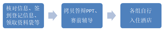 参加答辩的团队需根据答辩顺序依次进入答辩教室,前一组参赛选手前往答辩教室开始答辩,其余组参赛选手在等候教室候场。在每一组答辩即将结束时,候场室的工作人员将引导下一组参赛选手前往答辩教室,等候室内的参赛团队按照抽签顺序依次进行答辩。