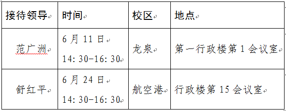 现将6月校领导接待日安排公布如下:
