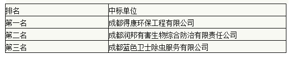 9月26日,成都信息工程大学灭鼠虫害服务项目比选小组召开比选会议。根据服务设计方案和服务价格的比选,经评审,中标单位情况: