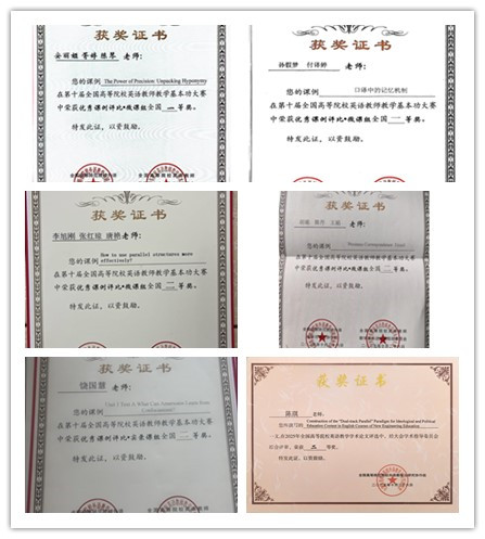 基本功大赛微课组别中,安丽娅、胥婷、陈琴教师团队的作品《The Power of Precision: Unpacking Hyponymy》,孙假梦、付译婷教师团队的作品《口译中的记忆机制》分别荣获全国一等奖;李旭刚、张红琼、唐艳教师团队的作品《How to use parallel structures more effectively?》,胡璐、陈丹、王娟教师团队的作品《Business Correspondence: Email》分别荣获全国二等奖;饶国慧、黄舒、邓圆教师团队的作品《English Hyponyms》荣获全国三等奖。基本功大赛实录课组别中,饶国慧老师的作品《Unit1 Text A What Can Americans Learn from Confucianism?》荣获全国二等奖。在英语教学优秀学术论文评选方面,陈琪老师的教学研究论文《Construction of the“Dual-track Parallel”Paradigm for Ideological and Political Education Content in English Courses of New Engineering Education》荣获全国二等奖。