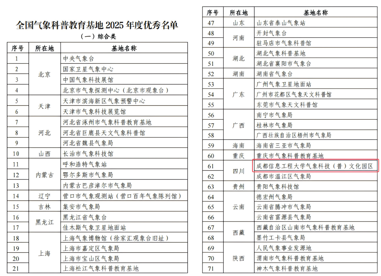 【本网讯】近日,根据中国气象学会下发的“中国气象学会关于全国气象科普教育基地2025年度工作总结情况的通知”,完美网页版“气象科技(普)文化园区”经各基地在线填报、各省气象学会审核、专家综合评审、社会公示等程序后,被评为“2025年度优秀全国气象科普教育基地”。