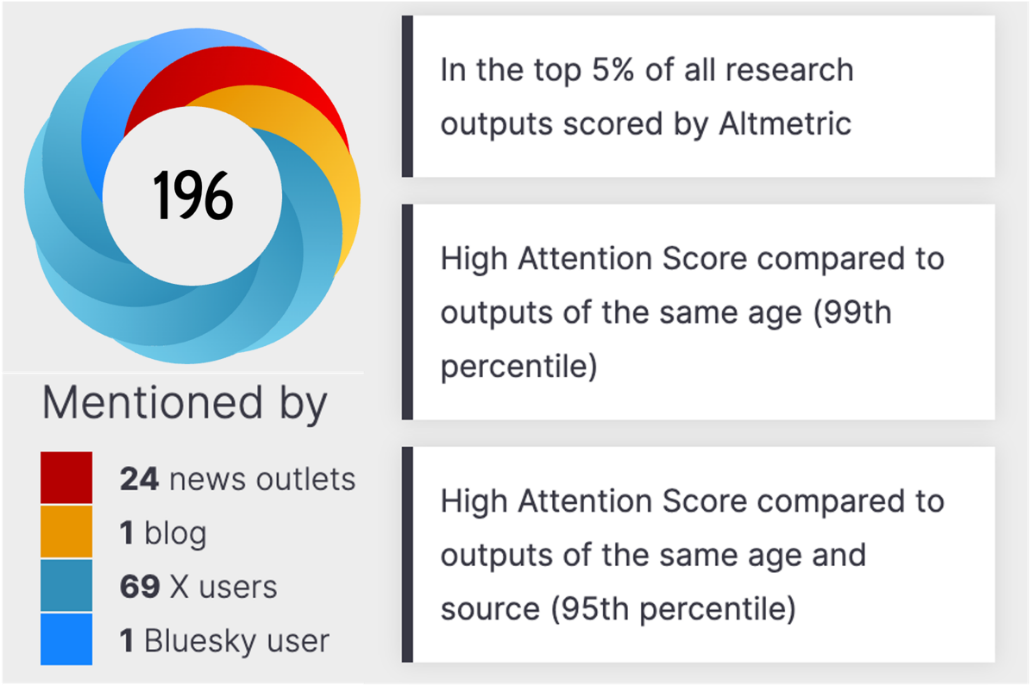 研究成果发表后,已引起了国际学术界和媒体的广泛关注。据Nature论文页面引用的Altmetric统计数据,相关成果已被来自全球24家媒体的新闻报道所引用和解读,并在社交媒体上引发讨论,显示出社会各界对火山喷发及其气候影响问题的广泛关注。英国高性能计算平台(ARCHER2)评选其为年度高影响力科学研究,团队成员周欣副教授将在ARCHER2科学庆典作特邀报告。