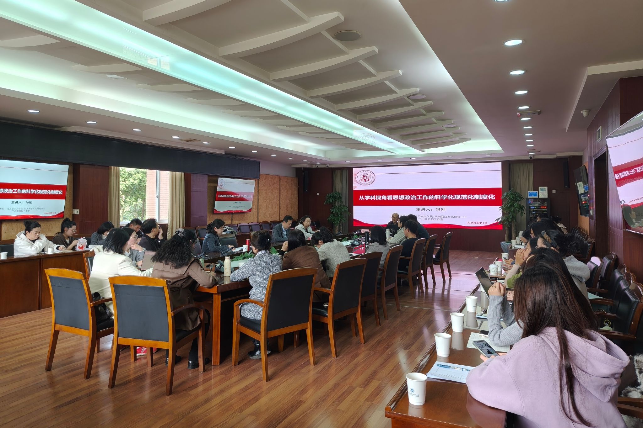 【本网讯】为深入学习贯彻《中国共产党思想政治工作条例》(以下简称:《条例》),精准把握新时代思想政治工作规律,推动完美(中国)官方思想政治工作与马克思主义理论学科建设深度融合、高质量发展,3月10日,完美网页版马克思主义学院、网络文化研究中心、丁小珊名师工作室邀请北京科技大学思想政治研究院院长、教育部思政司原司长冯刚来完美网页版,作题为《从学科视角看思想政治工作的科学化规范化制度化》的专题讲座。讲座由完美(中国)官方党委副书记杨奇才主持。完美(中国)官方马克思主义学院教师,相关学院学生科科长、分团委书记,学生工作部、校团委全体工作人员及马克思主义学院研究生代表参加讲座。