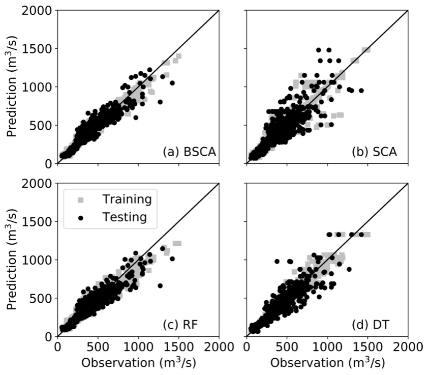 【本网讯】近期我校管理学院张茜茜以成都信息工程大学为第一单位,在地球科学领域公认的国际顶级期刊《Journal of Hydrology》(中科院一区,IF=6.4)上发表题目为“Bagged stepwise cluster analysis for probabilistic river flow prediction”的论文。该文章针对河水的径流预测提出了一种基于传统SCA模型与bagging技术相结合的新型ensemble模型,即BSCA模型,克服了传统SCA模型在数据稀疏区域(例如:径流极值)预测不准确的问题并提升了整体的预测准确度。此外,BSCA还可以通过结合probabilisticprediction的方法来量化径流预测值的不确定性,进而指出径流极值的风险大小。本文提出的新型模型展示出较高的径流预测准确度及量化径流极值风险的能力,说明它在未来的洪水控制和水资源管理中具备巨大的发展和实践潜力。