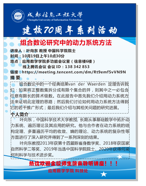来源:应用数学学院 作者:李婧雯日期:2021-10-12 审核:新闻中心 点击: