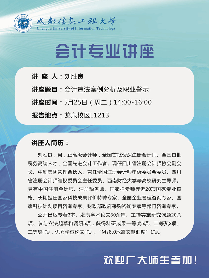 【学术报告预告】刘胜良:会计违法案例分析及职业警示
