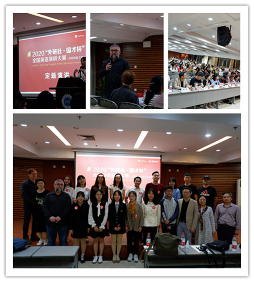 【本网讯】9月29日,2020“外研社•国才杯”全国英语演讲大赛初赛在成都信息工程大学航空港校区学术报告厅顺利举行。本次比赛由外语教学与研究出版社、中国外语测评中心、北京外研在线数字科技有限公司共同主办,成都信息工程大学外国语学院承办。外国语学院书记杨昊,院长黄驰,副院长卢婕参加了比赛,外国语学院教师吴玉华、杨云安、周杰、张舒、孙假梦、吴倩、外教John、Brendan担任了本次比赛的评委。