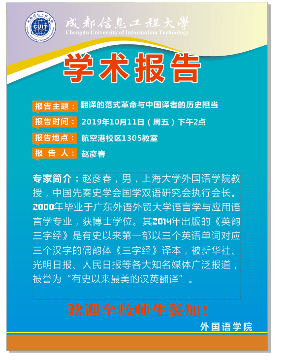 来源:外国语学院 作者:赵月日期:2019-10-11 审核:新闻中心 点击: