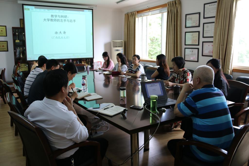 徐杰舜教授和老师们分享了教学方法和科研理念,讲述了作为大学老师,教学和科研并重的重要性。他认为,教学是作为一个合格的大学老师的基础;而科研是大学老师的强身之道。