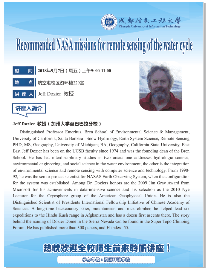 来源:资源环境学院 作者:张菊日期:2018-09-05 审核:新闻中心 点击: