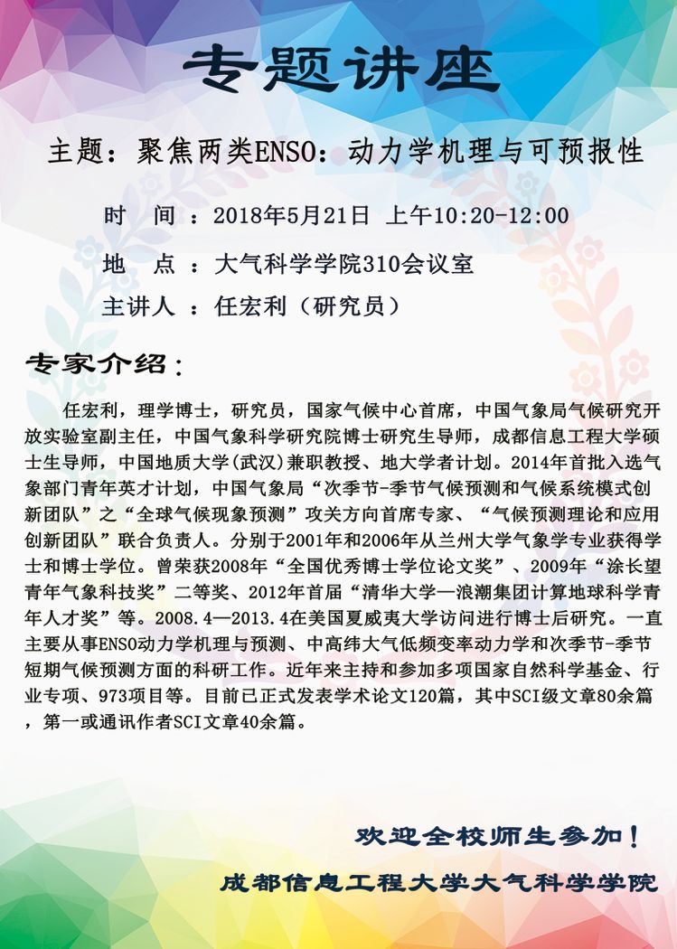 来源:大气科学学院 作者:尹欣日期:2018-05-18 审核:新闻中心 点击: