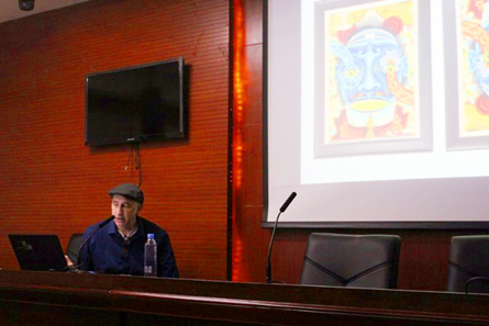 【本网讯】5月2日晚上,来自美国艺术中心设计学院的Clayton教授应邀到我校龙泉校区一教二楼会议室举办了一场题为“插画艺术”的学术讲座。文化艺术学院视觉传达设计数字游戏动漫艺术全体师生100余人聆听了讲座。讲座由数字游戏动漫艺术教学团队负责人禹然主持。