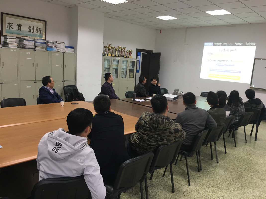 西华大学卿朝进作了题为《Carrier Frequency Offset (CFO) Estimation with Compressive Sampling》的学术报告,并从Background & Related Work、Compressive Sampling、CFO Estimation等方面做了详细介绍,并展示了取得的相关成果。