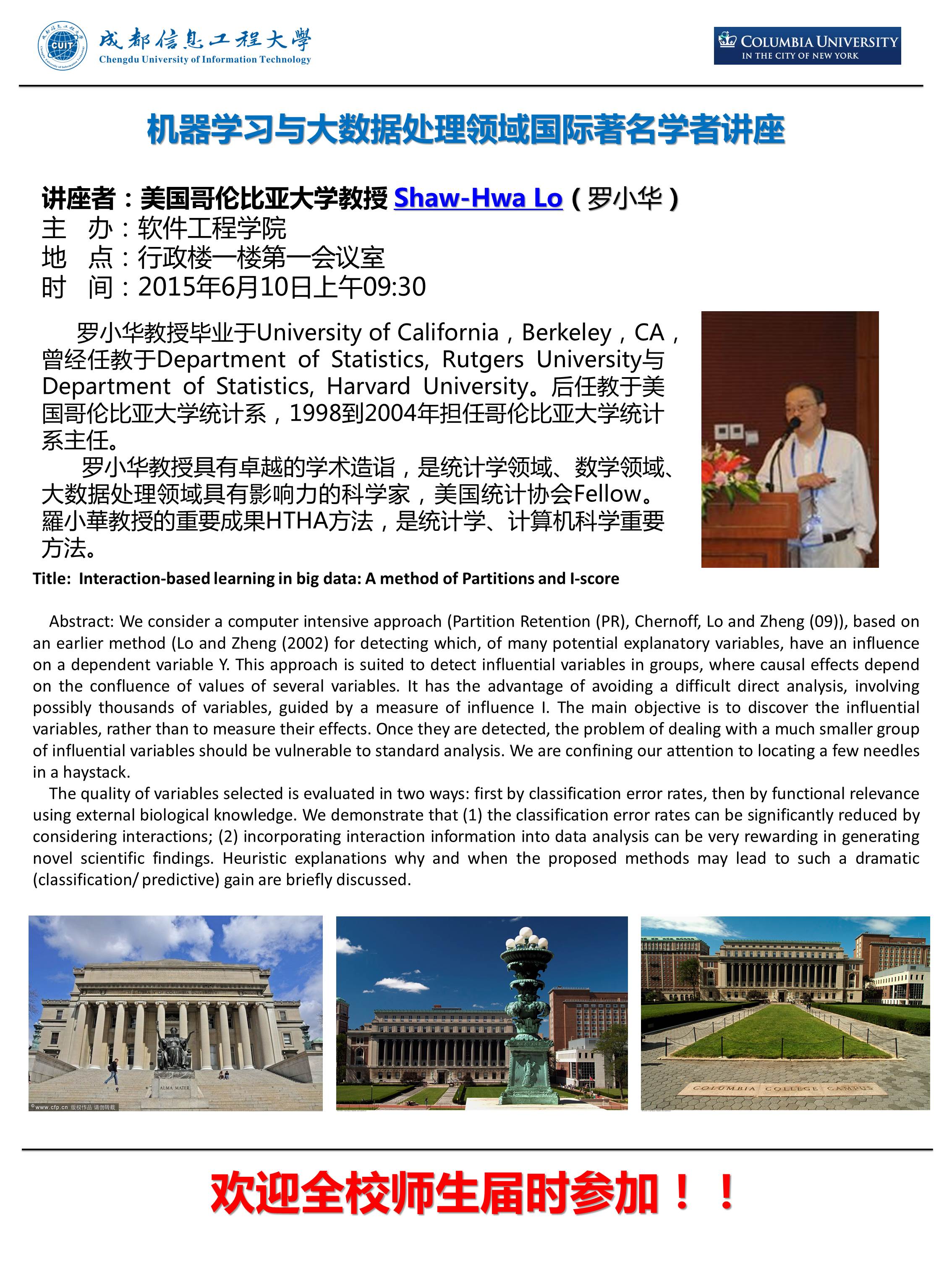 来源:软件工程学院 作者:李璘来日期:2015-06-08 审核:新闻中心 点击: