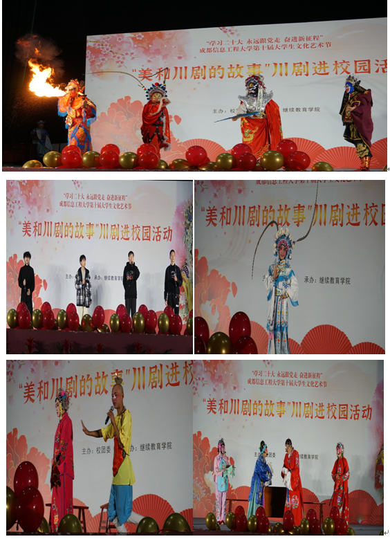 【本网讯】12月6日,成都信息工程大学第十届大学生文化艺术节——“美和川剧的故事”川剧进校园活动在龙泉校区大礼堂举行。校团委、龙泉校区各学院、各职能部门负责人及1500余名师生代表共同观看了演出。本次活动由校团委主办,继续教育学院承办。