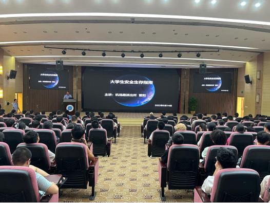 【本网讯】为进一步加强我校学生防范电信网络诈骗的意识和能力,拓展校园安全防范宣传教育覆盖面,切实减少我校电信网络诈骗案件发生,积极营造良好的校园学习生活氛围,9月16日下午,学校党委保卫部、校团委、自动化学院、外国语学院、双流公安分局机场路派出所在我校航空港校区国际会议厅联合组织开展了“大学生安全生存指南”的主题讲座活动,此次讲座由机场路派出所副所长曾阳主讲,学校300余名学生干部及新生代表参加了本次讲座。