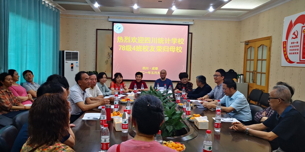 【本网讯】正值成都信息工程大学建校70周年之际,为促进母校与校友情感、信息的交流沟通,助推校友在自身事业领域的蓬勃发展,使校友与母校在感情和事业上联系得更加紧密。5月9日原四川统计学校78级4班二十余名校友回到成都信息工程大学开展毕业40周年校友会,时任该班班主任老师唐立太和数学老师刁国政,统计学院院长朱胜,副院长滕磊,五级职员李家玉,校友办副主任晏正春以及统计学院校友工作相关老师出席座谈会,座谈会由统计学院党委书记李心伟主持。