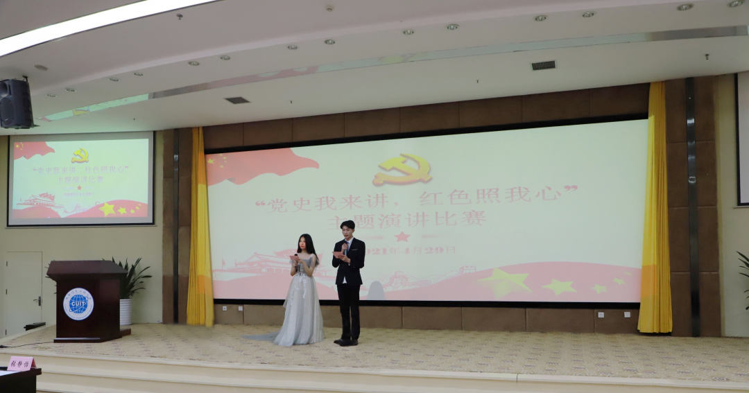 【本网讯】为庆祝中国共产党建党100周年,由共青团成都信息工程大学委员会主办、光电工程学院团委承办、校学生会与研究生会协办的成都信息工程大学“党史我来讲,红色照我心”演讲比赛(决赛)于2021年4月29日下午2:30在我校航空港校区国际会议厅举办。