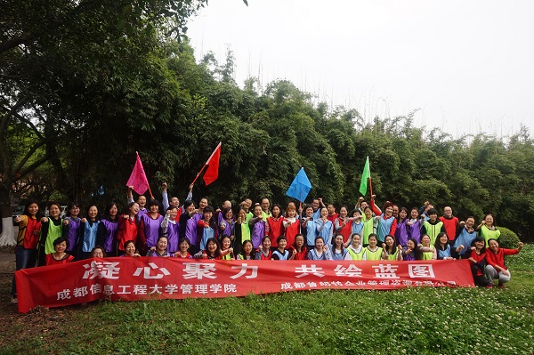 【本网讯】为进一步推动教师队伍建设,加强教师间的沟通交流,打造开拓、拼搏、团结、高效的工作团队,提升学院凝聚力和向心力,4月12日下午, 管理学院在龙泉校区体育馆开展了“凝心聚力  共绘蓝图”素质拓展活动,管理学院全体教职工参加了活动。