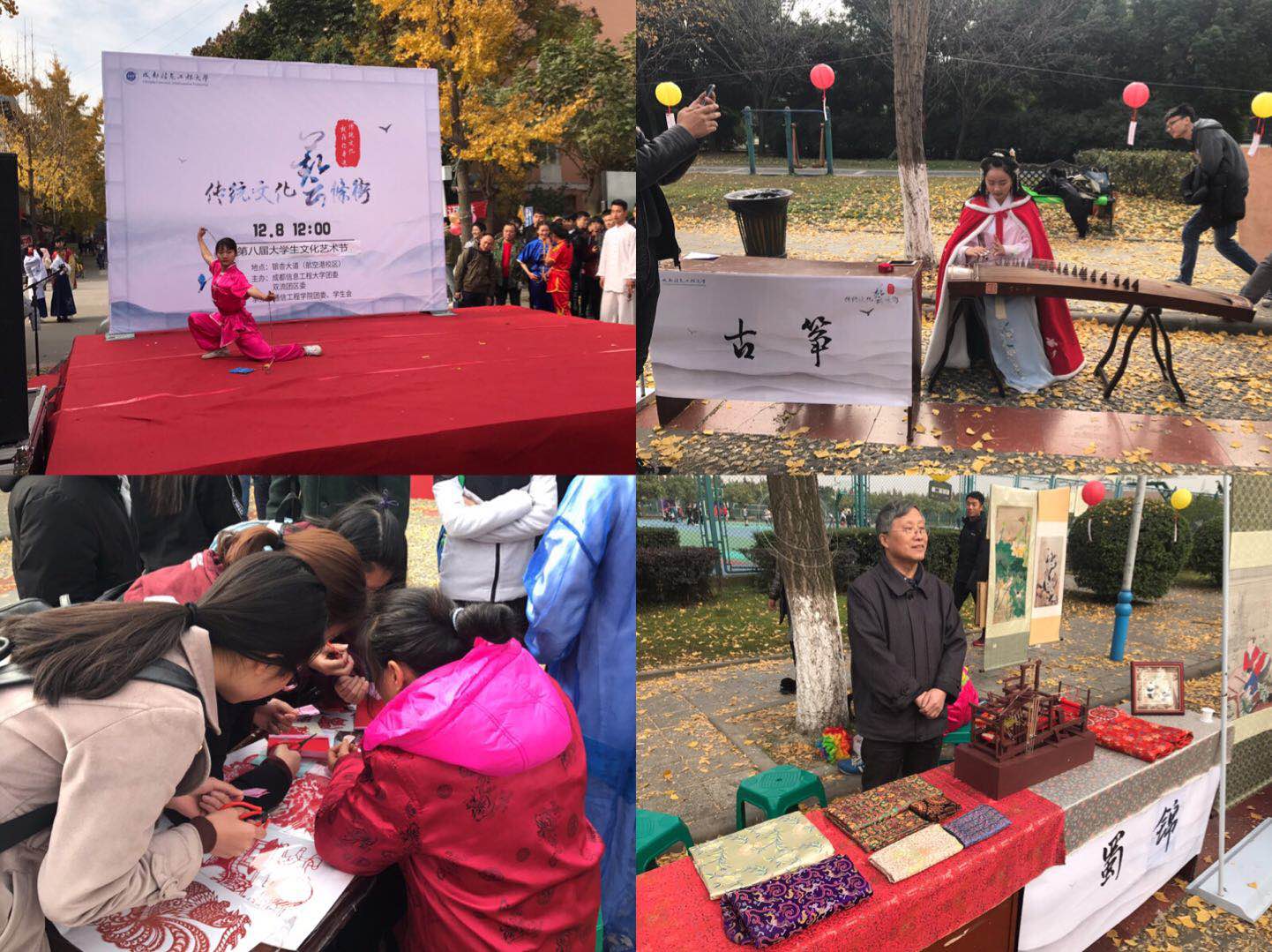 【本网讯】12月8日中午,第八届大学生文化艺术节传统文化“艺”条街活动在我校航空港校区银杏大道举行。本次活动由学校团委、双流团区委主办,通信工程学院承办。校团委负责人,部分学院院长、总支书记(副书记)、团委书记,学校部分教职工与近2000名成信学子参加了活动。