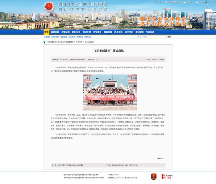 【本网讯】7月4日,文化艺术学院举行了“2017年“四川省SIP安创计划—校园安全”大学生公益项目创新大赛颁奖典礼。从今年5月发布大赛公告开始,“四川省SIP安创计划—校园安全”大赛获得了全校师生的积极响应,经过了申报、答辩到最终的立项,每一个项目都凝聚了成信大师生对“安全”的关注,让“安全”的内涵经历了创新、升华、丰富。大赛也同时获得来自四川省安全生产监督管理局和四川省职业健康协会的关注,其中6个项目脱颖而出将陆续在成都市范围内落地实施。学院院长廖思湄、副院长徐翀为获奖团队颁奖,成信大师生将继续用自己的智慧和创新为社会服务,续写“校园安全”的华美篇章。