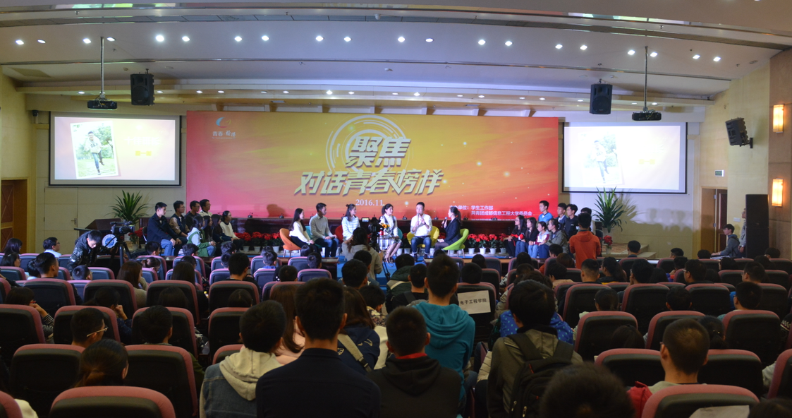 【本网讯】11月14日—11月16日,由学生工作部、共青团成都信息工程大学委员会主办的学校第五期“聚焦·对话青春榜样”活动分别在航空港校区国际会议厅和龙泉校区学术报告厅举行。本期“聚焦·对话青春榜样”共举办三场,分别由学生工作部老师郭丹、物流学院老师彭靖涵主持。学生工作部、校团委相关人员,部分学院党总支书记、辅导员,1200余名学生参加了本次活动。