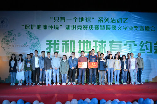 此次活动以“地球日”为契机,面向全体在校大学生征集摄影作品。以“地球.老师”为主题,旨在用细腻的镜头,独特的视角和优雅的文字去记录大学生活中各式各样关于环保,教师的剪影。在经过筛选和网上投票后,共有三十三人得奖。其中王嘉元、王思睿两名同学获得一等奖,四名同学获得二等奖,六名同学获得三等奖,二十名同学获得优秀奖,杨军威同学获得人气奖。在颁奖仪式上,学生摄影协会会长王思睿上台对本次摄影比赛做了总结,他说这次摄影文字展的作品质量很高,希望同学们能在今后继续积极参加这种活动。