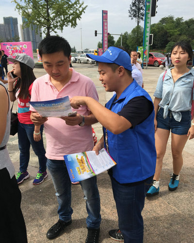 在华阳街道办的帮助下,我院志愿者分别在南湖梦幻岛、摩尔新世界商城、华阳汽车客运站摆点宣传华阳首届“优秀市民”评选活动。志愿者们向过往的市民发放宣传单,并讲解关于活动的一些相关事项,告诉市民可以关注华阳官方微信和微博,“优秀市民”评选活动的一些相关通知会在微信和微博上公布,对于一些市民提出的问题,志愿者们也耐心热情的回答。在活动中,有需要帮助的市民,志愿者们也积极热情提供帮助。
