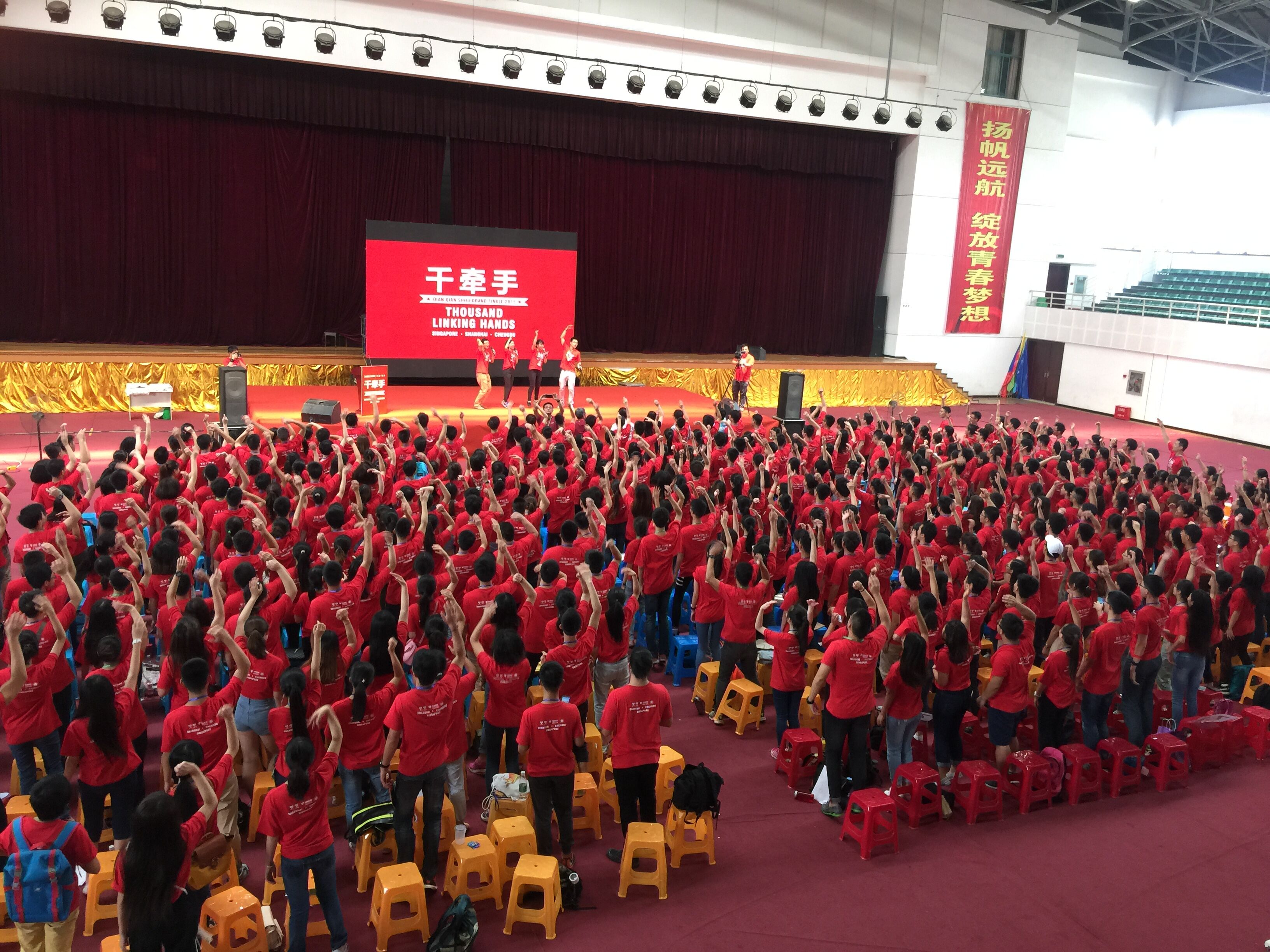 7月19日上午,由成都信息工程大学与触爱社会服务(新加坡)共同主办的2015“千牵手”夏令营公益活动开幕式在我校航空港校区体育馆举行。我校副校长于世祥、触爱社会服务(新加坡)执行董事萧树庆,以及触爱有关负责人、学校团委、文化艺术学院主要负责人与中新双方500余名师生志愿者参加了开幕式。