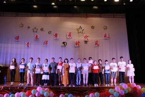 【本网讯】5月7日晚上,由商学院学生会文艺部举办的“成都信息工程大学商学院2015年度五四表彰暨纪念五四运动96周年文艺晚会”于大礼堂成功举行,此次晚会以“谱青春华章,展时代风采”为主题,旨在弘扬五四精神,引导全院青年积极进取,展现新时代商院学子风采。院长曹邦英、党总支书记李家玉、副院长李来儿、张恒、党总支副书记闫书丽等学院领导以及各教研室主任、副主任、部分教师和全院学生出席了晚会。