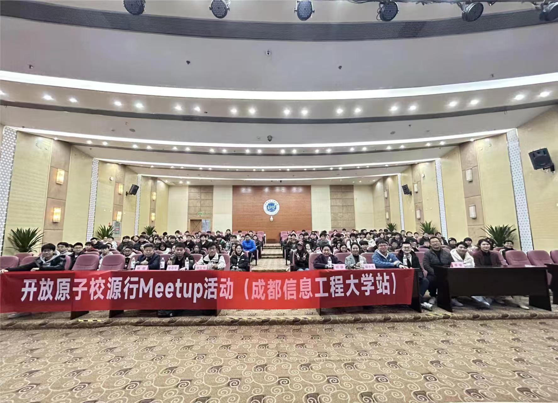 【本网讯】1月9日,开放原子校源行Meetup活动(成都信息工程大学站)在我校国际会议厅成功举行。本次活动是在开放原子开源基金会的支持下,在学校教务处、校团委的推动下,由通信工程学院(微电子学院)承办。校团委副书记尹欣,蜀鸿会创始人、华为技术开发专家、开放原子校源行开源讲师唐佐林先生,通信工程学院(微电子学院)教授陈超,开放原子校源行开源大使、全国开源鸿蒙产教融合共同体执行秘书连志安先生,软通教育产品中心负责人、Open Harmony教育工作组副组长刘静女士,通信工程学院(微电子学院)团委书记盛小芳和通信工程学院(微电子学院)大学生创新实验室主任、学校开放原子开源社团负责人谭毅老师出席了本次活动。