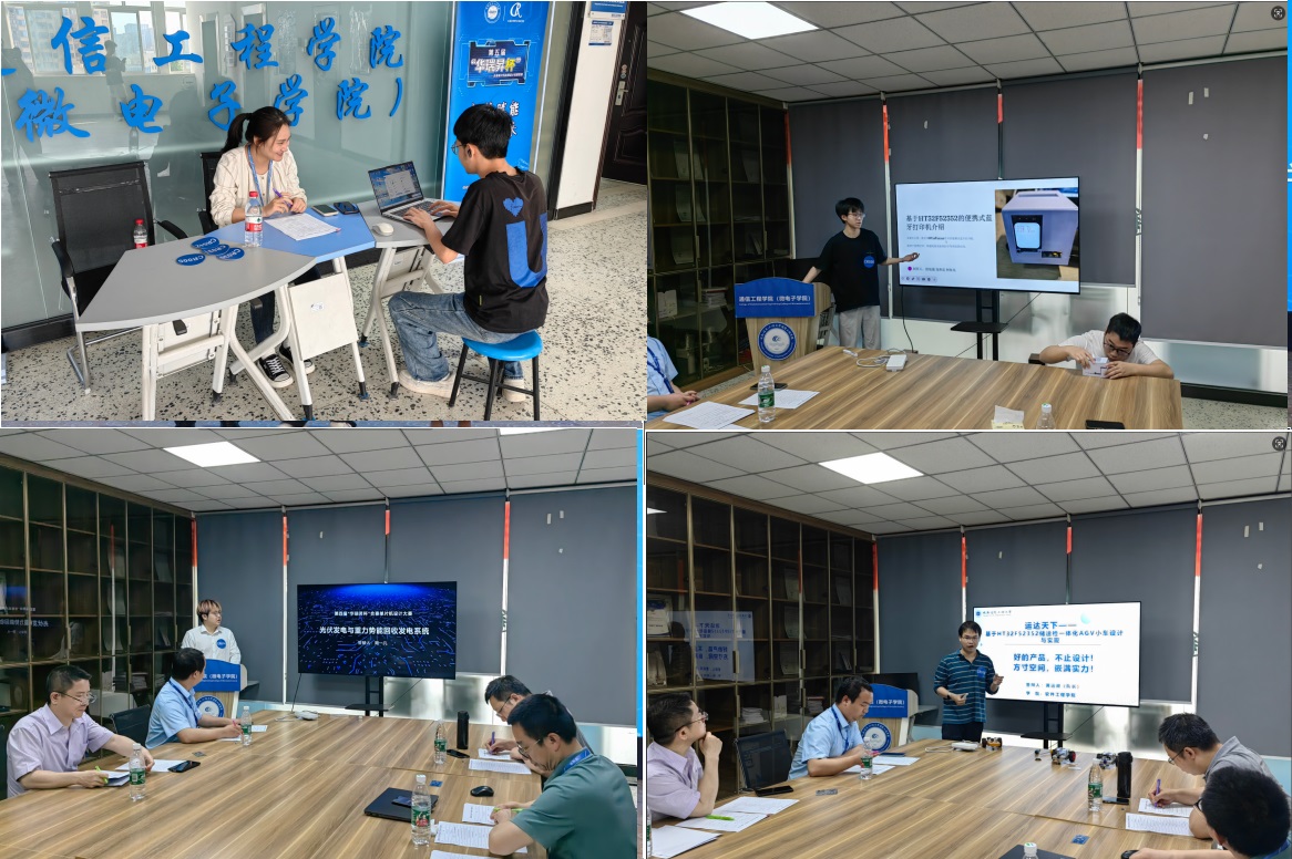 龙和富团队所完成的喵喵机-热敏打印机获得了特别优秀奖;黄运昶团队所完成的基于合泰单片机在工业场景下的物流分拣仓储一体化智能AGV获得了一等奖;周一凡团队完成的基于重力势能回收发电的智能太阳能电梯和郭佳硕团队所完成的多功能智能台灯获得了二等奖;陈秋何团队所完成的电动单车智能充电系统、何诗琦团队所完成的基于HOLTEK MCU HT32F52352/64LQFP的车用电子控制系统以及杨青山团队所完成的多功能灾难救援无人机获得了三等奖;何曼曼团队的智能鞋柜获得了最佳创意奖;袁贵宾团队的智能老幼看护系统获得了最佳工程奖;谭毅老师获得了本届大赛的优秀指导教师奖。随后,颁奖嘉宾、获奖选手和到场师生一同观看了本届大赛的优秀作品展播。