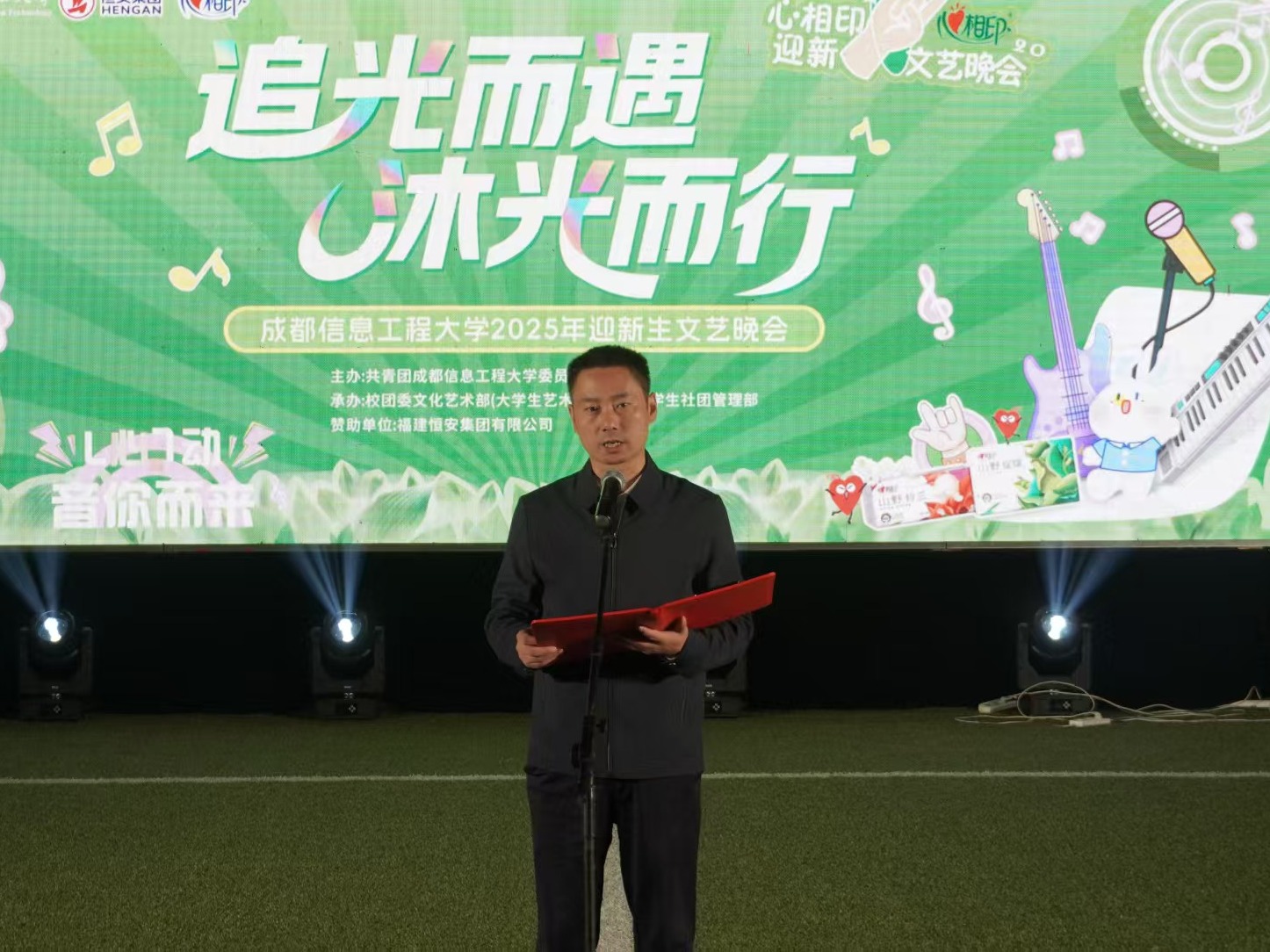 【本网讯】金秋蓉城,桂香满园。10月27日、29日,学校“追光而遇·沐光而行”2025年迎新生文艺晚会先后在龙泉校区与航空港校区举行。学校副校长陈权亮,各职能部门负责人,二级学院团委书记,教师代表与2025级新生齐聚一堂,共同观赏这场融合视听艺术与人文精神的青春盛典。