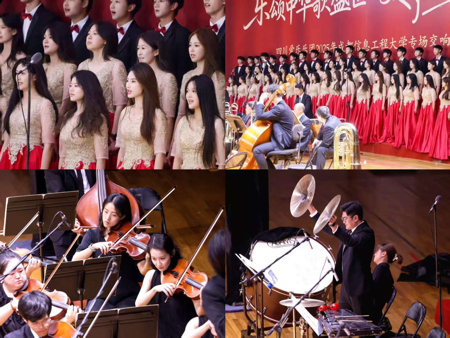 【本网讯】9月25日晚,学校在航空港校区体育馆举行“乐颂中华歌盛世 美育成信润芳华”四川爱乐乐团2025年成都信息工程大学专场交响音乐会。学校党委副书记杨奇才,各职能部门、学院负责人,乐团相关工作人员,在校师生近三千人共同聆听演出,感受交响艺术与校园文化交融的魅力。