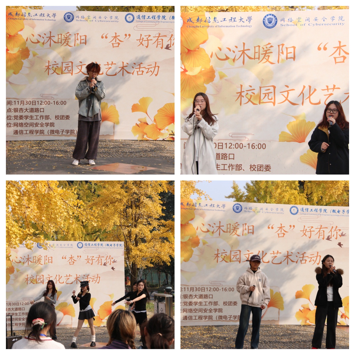 网络空间安全学院文艺部同学带来的“银杏歌舞”表演,以柔美舞姿与动人歌声呼应秋日意境,将现场气氛推向高潮。