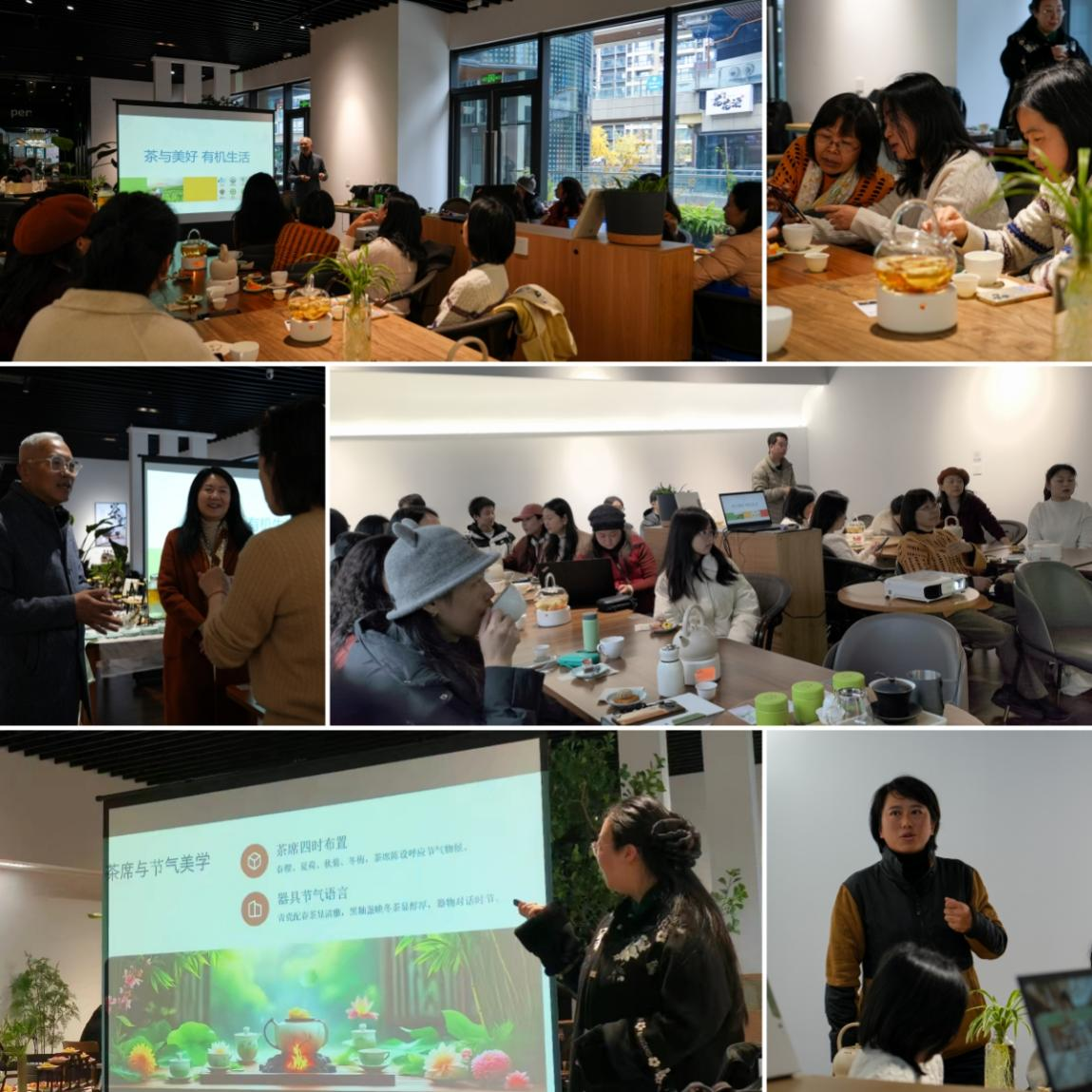 分享结束后,大家围绕“有机生活融入课堂”“阅读平衡工作与生活”等话题纷纷发言交流,点燃了思想碰撞的火花。同时,在专业茶艺师示范指导下进行了茶艺实践。