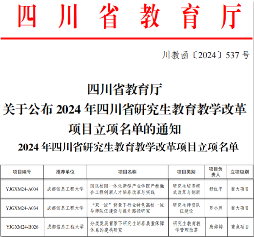首次四川省研究生教研教改项目立项名单