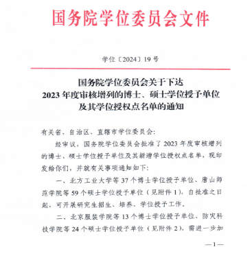 国务院下达2023年度审核增列博士授予单位及授权点