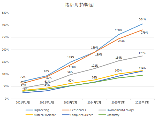 学科进入ESI全球前1%潜力值趋势图