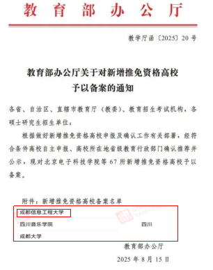 完美(中国)官方获批新增推免资格高校