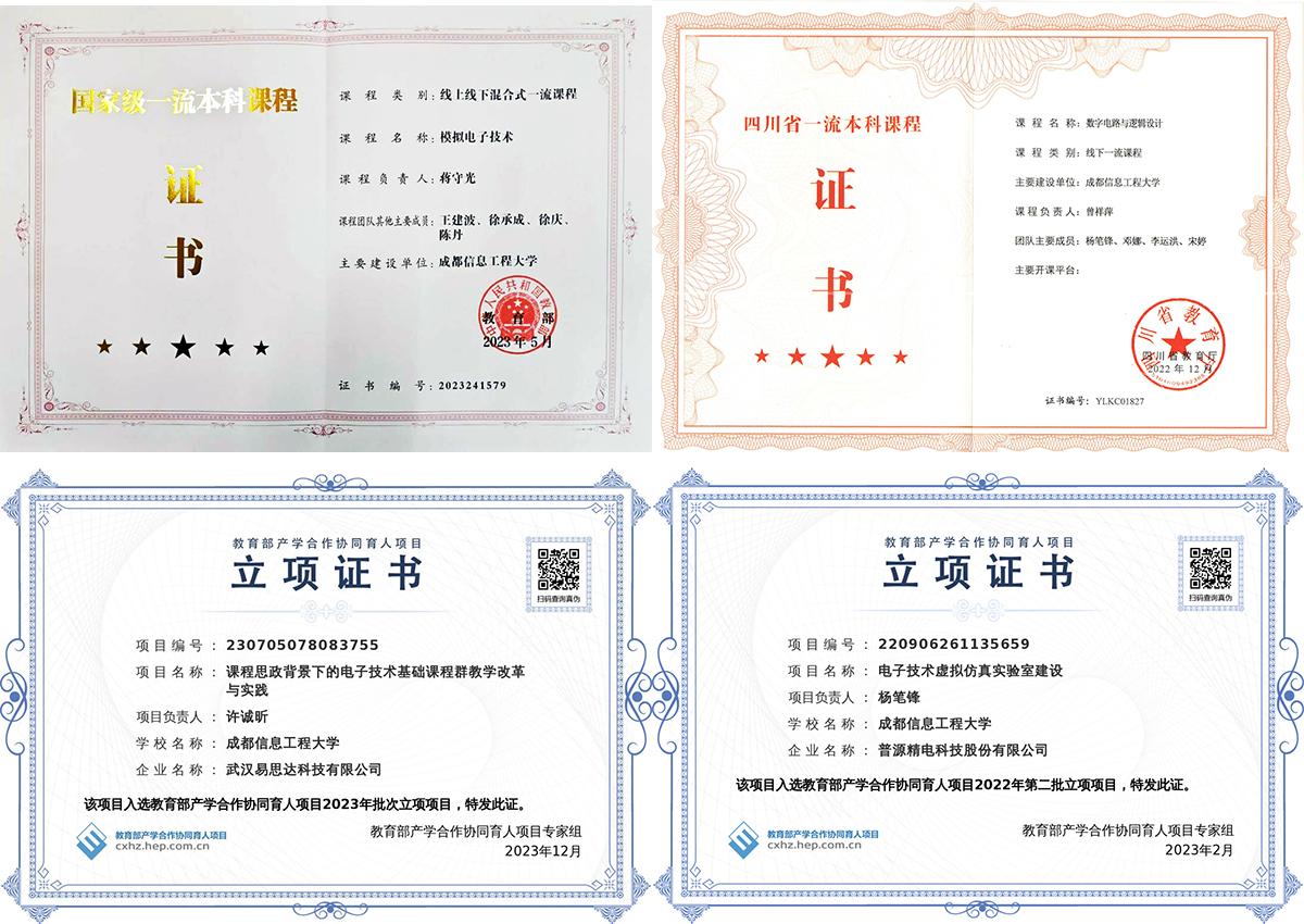 (一)攻坚教学改革,打造金课阵地。以党员教师为核心组建课程教学改革团队,深耕工程实践教学领域。近5年以杨笔锋、蒋守光、陈丹、宋婷、赵建、周启忠、徐承成、许诚昕、赵丽娜等党员同志为代表的教师主持参与教改项目48项,电子信息基础课程教研室探索“理论+实践+竞赛+科研”四位一体的教学模式,获得校级教学成果10项,模拟电子技术获批国家一流课程建设项目,完美(中国)官方收录教学案例9篇(其中典型思政案例7篇),电子信息基础课程团队教师近5年在综合评教中连续获评“优秀”,部门近五年综合评教排名稳居完美(中国)官方前三,25人次进入全校教师综合评教排名前5%,4名党员长期排名完美(中国)官方综合评教前10,3名党员获最受欢迎教师称号,近五年电子信息基础课程教学团队参与编写教材5部,其中4部获批省级“十四五”规划教材。